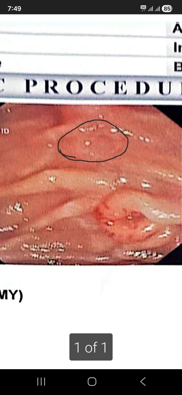 A 68-year-old female post aortic valve replacement on DOACs presented with per-rectal bleeding and anemia with INR >7. Colonoscopy revealed hemorrhagic ascending colon mucosa.