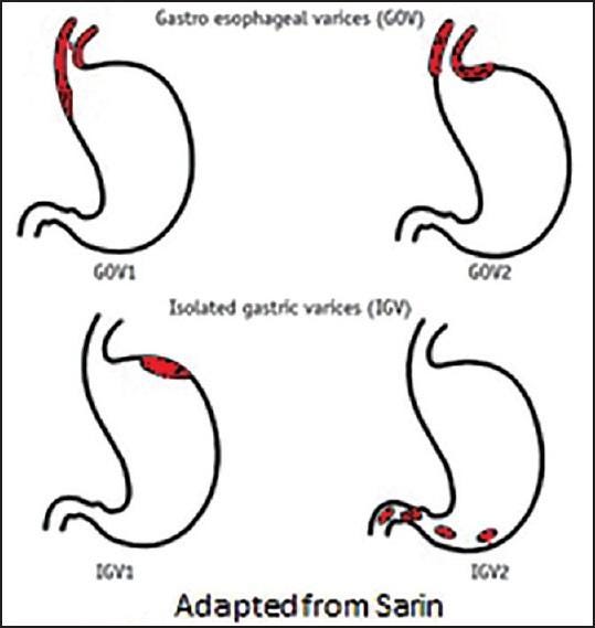 Wani ZA, Bhat RA, Bhadoria AS, Maiwall R, Choudhury A. Gastric varices: Classification, endoscopic and ultrasonographic management. J Res Med Sci. 2015 Dec;20(12):1200-7. doi: 10.4103/1735-1995.172990. PMID: 26958057; PMCID: PMC4766829.