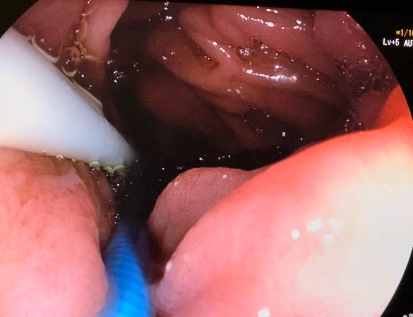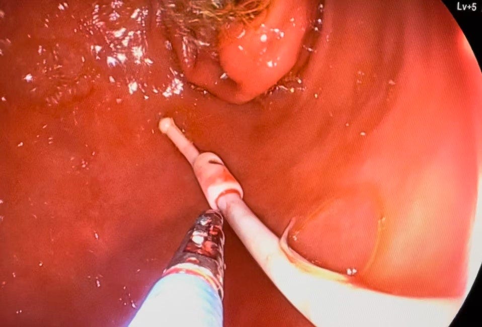 Alternatively, you may use the rat tooth forceps to grab the tube located in the stomach and pull the scope out, so that the scope friction does not pull out the jejunal tube.